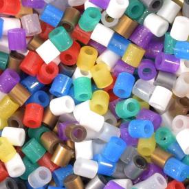 Questo comodo secchiello contiene 6.000 perline da stirare in 9 colori misti (bianco, nero, arancione, fucsia, giallo, blu, turchese, lilla e verde) di altissima qualità, ognuna con diametro e altezza di 5 mm (misura MIDI), come le Pyssla Ikea.