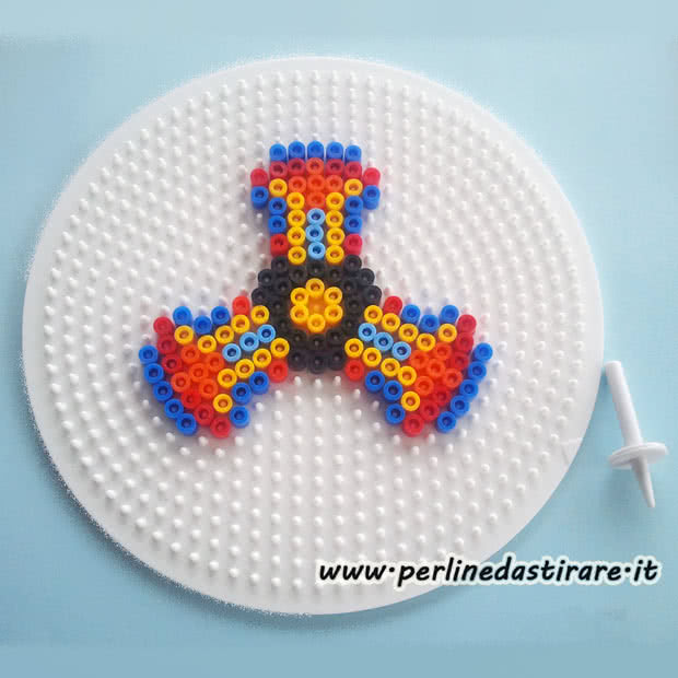 Uno schema per realizzare una trottola a forma di fidget spinner con le Hama beads Pyssla.