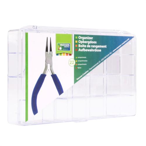 Una comoda valigetta in plastica trasparente per tenere in ordine o trasportare accessori e perline con 22 scomparti.